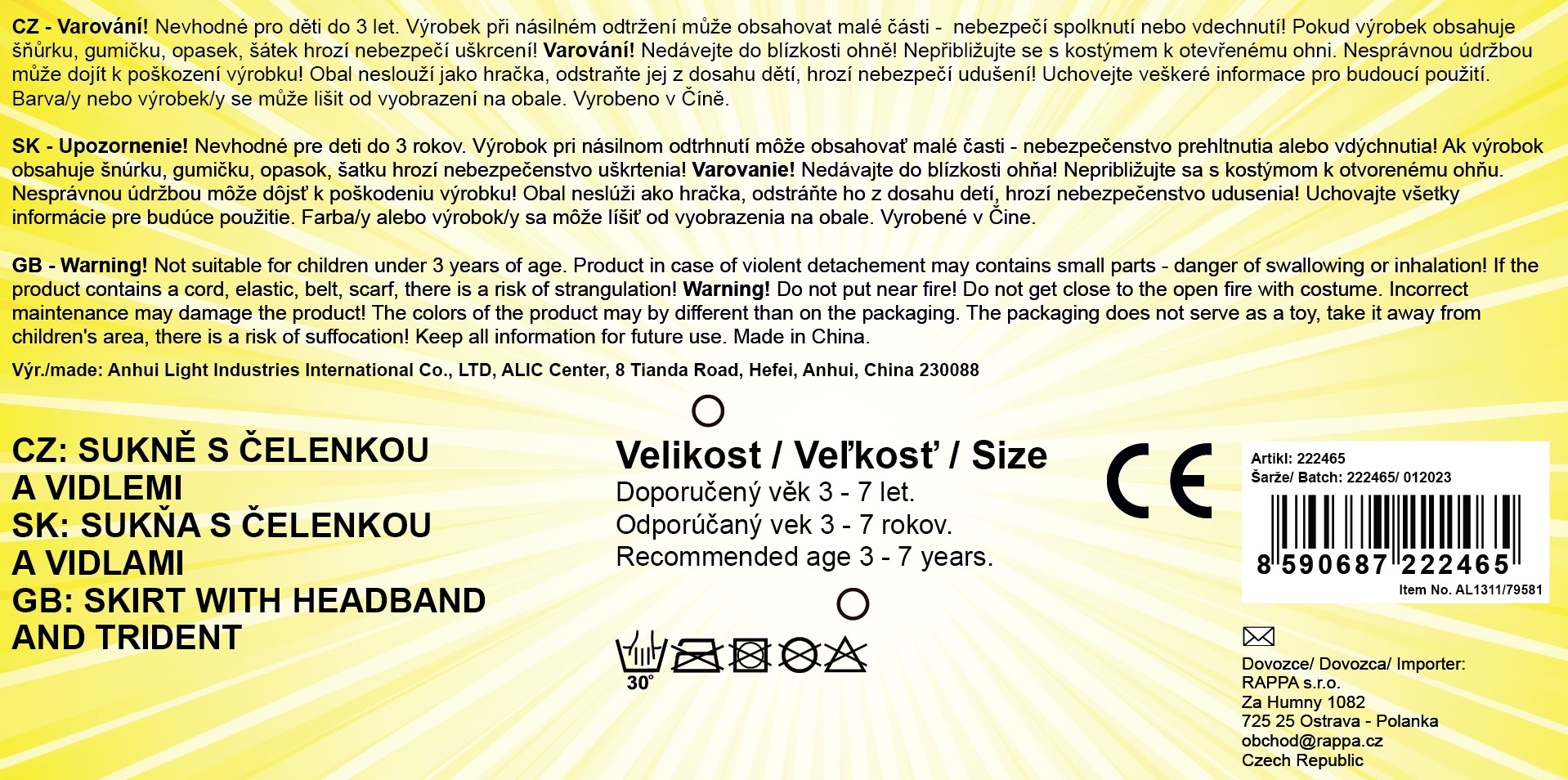 Roztomilá sukýnka TUTU je určena pro holčičky ve věkovém rozmezí 3-7 let (104-146 cm), obvod pasu 46-72 cm. Sukýnka typické červenočerné barvy je v délce 30 cm. Součástí této sady je senzační čelenka s rohy a hůlka!
