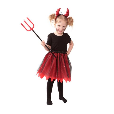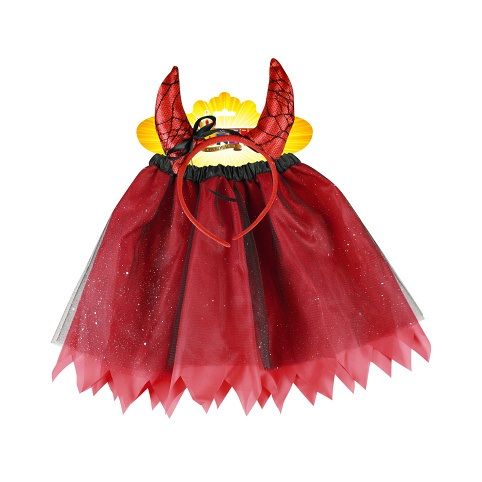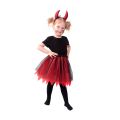 Okouzlující čertovská sukýnka TUTU je určena pro holčičky ve věkovém rozmezí 3-7 let (104-130 cm). Balení obsahuje nadýchanou červenou sukničku s černým tylem, který je zdoben stříbrnými třpytkami a k tomu sladěnou čelenku s rohy. Délka sukýnky je cca 35 cm. Sukně je v pase na gumičku.