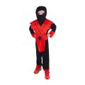 Karnevalový kostým Ninja ve velikosti M je určen pro chlapce ve věkovém rozmezí 6-8 let (116-128 cm). Balení obsahuje overal, vestu, kuklu, čelenku a opasek. Červené prvky kostýmu jsou dekorovány pavoukem a pavučinami. Nejen letos je potřeba myslet EKO-nomicky i EKO-logicky! EKO-balení je vhodné zejména pro e-shopy kde zákazník nakupuje dle fotografie a není třeba velkého balení s věšákem. EKO-logicky – na balení bylo použito méně plastu a dalších materiálů. Jedná se o malý transparentní obal s fotografií. EKO-nomicky –EKO-obal zabere jen polovinu místa – šetřete skladová místa s námi!