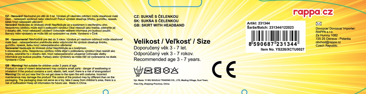 Magický halloweenský kostýmek v typicky oranžovo-černé barvě. Kostým je určen pro holčičky ve věkovém rozmezí 3-7 let. Balení obsahuje nadýchanou sukničku a k tomu perfektně sladěnou čelenku zdobenou dýněmi na pružinkách. Délka sukýnky je cca 30 cm. Sukně je v pase na gumičku. Ideální doplněk na oslavu Halloweenu.