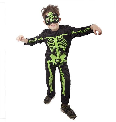 Strašidelný karnevalový kostým s motivem kostlivce! Kostým ve velikosti M je určen pro chlapečky ve věkovém rozmezí 6-8 let (116-128 cm). Balení obsahuje černou kombinézu a masku s motivem zeleného kostlivce. Nejen letos je potřeba myslet EKO-nomicky i EKO-logicky! EKO-balení je vhodné zejména pro e-shopy kde zákazník nakupuje dle fotografie a není třeba velkého balení s věšákem. EKO-logicky – na balení bylo použito méně plastu a dalších materiálů. Jedná se o malý transparentní obal s fotografií. EKO-nomicky –EKO-obal zabere jen polovinu místa – šetřete skladová místa s námi!