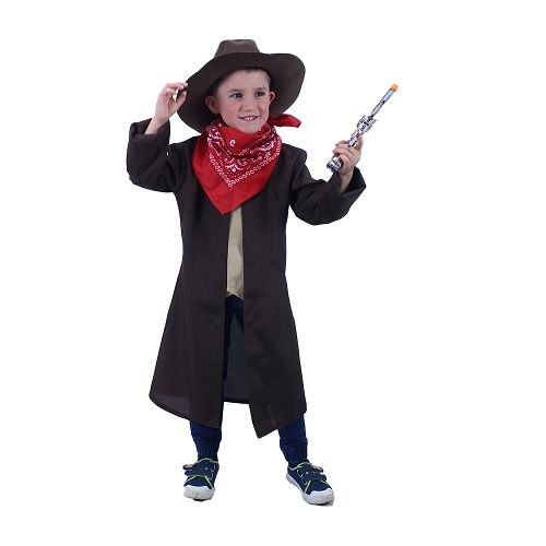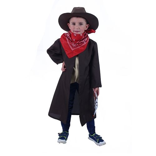 Karnevalový kostým pro malé kovboje! Kostým ve velikosti M je určen pro chlapce ve věkovém rozmezí 6-8 let (116-128 cm). Balení obsahuje kabát, vestu, šátek a klobouk!