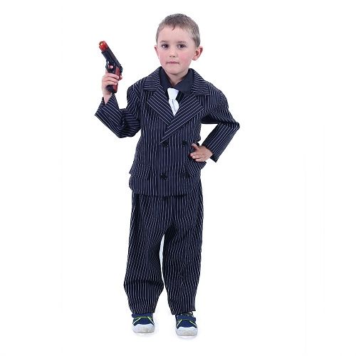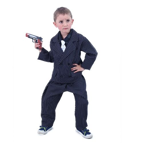 Elegantní gangsterský kostým se hodí na každou mafiánskou párty nebo karneval! Kostým ve velikosti M je určen pro chlapce ve věkovém rozmezí 6-8 let (116-128 cm). Balení obsahuje sako, kalhoty, náprsenku a kravatu.