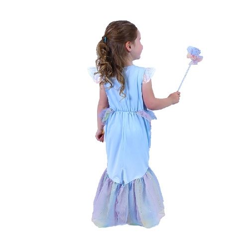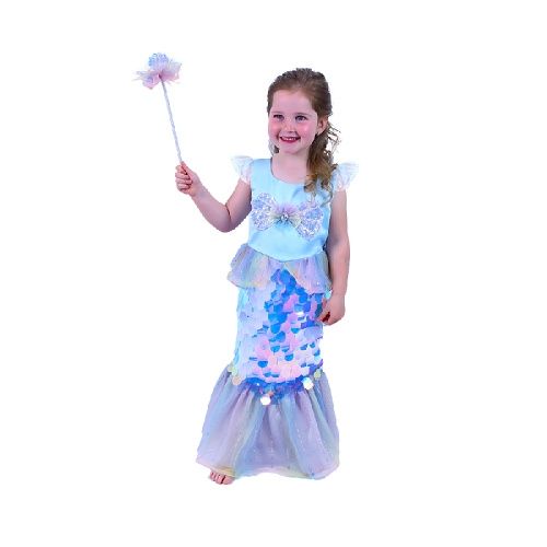Úchvatný karnevalový kostým s motivem mořské panny! Kostým modré barvy ve velikosti M je určen pro holčičky ve věkovém rozmezí 6-8 let (116-128 cm). Balení obsahuje exkluzivní šaty, které jsou zdobeny flitry, které vypadají jako šupiny, součástí kostýmu je hůlka. Nejen letos je potřeba myslet EKO-nomicky i EKO-logicky! EKO-balení je vhodné zejména pro e-shopy kde zákazník nakupuje dle fotografie a není třeba velkého balení s věšákem. EKO-logicky – na balení bylo použito méně plastu a dalších materiálů. Jedná se o malý transparentní obal s fotografií. EKO-nomicky –EKO-obal zabere jen polovinu místa – šetřete skladová místa s námi!
