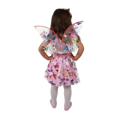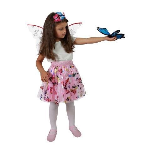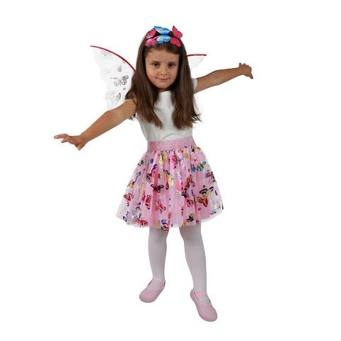 Roztomilá sukýnka TUTU je určena pro holčičky ve věkovém rozmezí 3-7 let (104-146 cm), obvod pasu 52-80 cm. Nadýchaná sukýnka růžové barvy s potiskem barevných motýlků je v délce cca 32 cm. Součástí této sady je senzační čelenka a perfektně sladěná křídla.