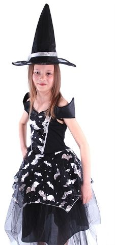 Parádní čarodějnický kostým s netopýřími motivy! Kostýmek o velikosti S je určen pro holčičky ve věkovém rozmezí 3-5 let (104-113 cm). Černé šaty s nadýchanou sukní jsou zdobeny stříbrnými prvky a stříbrným lemováním. Součástí balení je také perfektně sladěný klobouk, který je rovněž zdoben stříbrnou stuhou. Staň se hvězdou karnevalového večírku díky tomuto kostýmu!