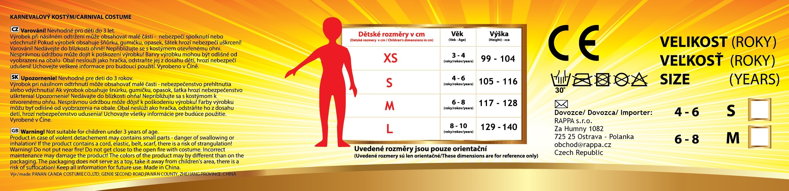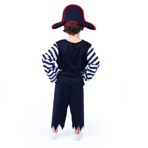 Karnevalový kostým pro malého piráta! Senzace! Kostým ve velikosti S je určen pro chlapce ve věkovém rozmezí 4-6 let (110-116 cm). Balení obsahuje horní díl, kalhoty, pásek, klapku na oko a stylovou pirátskou čepici.