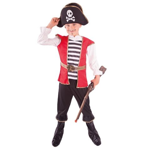 Chystáš se vyplout na pirátskou výpravu? Tak si pořiď ten správný kostým a vzhůru na palubu! Kostým, ve velikosti S je určen pro chlapce ve věkovém rozmezí 4-6 let. Balení obsahuje horní díl, kalhoty s návleky na boty a stylovou pirátskou čepici. Nejen letos je potřeba myslet EKO-nomicky i EKO-logicky! EKO-balení je vhodné zejména pro e-shopy kde zákazník nakupuje dle fotografie a není třeba velkého balení s věšákem. EKO-logicky – na balení bylo použito méně plastu a dalších materiálů. Jedná se o malý transparentní obal s fotografií. EKO-nomicky –EKO-obal zabere jen polovinu místa – šetřete skladová místa s námi!
