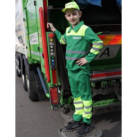 Být popelářem byl v dětství sen skoro každého malého chlapce! S tímto exkluzivním dětským kostýmem se v něj proměníte během chvilky! Sada obsahuje blůzu s nápisem OZO!!!, kalhoty a čepici, vše s reflexními pruhy. Kostým velikosti M je určen pro chlapečky ve věkovém rozmezí 6-8 let (116-128 cm).