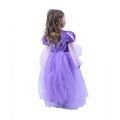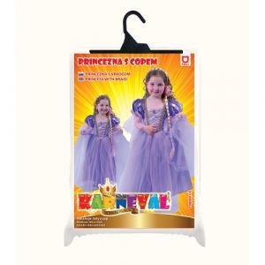 Úchvatný dívčí kostým pro princezny! Kostým princezny ve velikosti S je určen pro holčičky ve věkovém rozmezí 4-6 let (110-116 cm). Kostýmek je ušit v růžovo-fialkové barvě a zdoben zlatým lemováním. Součástí kostýmu je čelenka do vlasů s dlouhým blond copem, zdobeným květinkami.