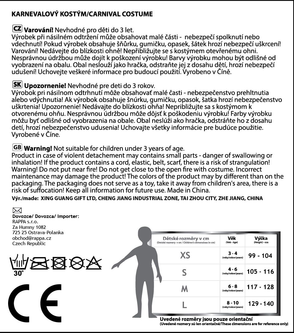 Překrásný dívčí kostým pro malé zimní princezny! Kostým princezny Aničky ve velikosti M je určen pro holčičky ve věkovém rozmezí 6-8 let (116-128 cm). Kostýmek je ušit v černo-modrých barvách, je zdoben zlatým lemováním a součástí je růžový saténový plášť s modrým krystalem. Tento stylový kousek ti nesmí v šatníku chybět! Nejen letos je potřeba myslet EKO-nomicky i EKO-logicky! EKO-balení je vhodné zejména pro e-shopy kde zákazník nakupuje dle fotografie a není třeba velkého balení s věšákem. EKO-logicky – na balení bylo použito méně plastu a dalších materiálů. Jedná se o malý transparentní obal s fotografií. EKO-nomicky –EKO-obal zabere jen polovinu místa – šetřete skladová místa s námi!