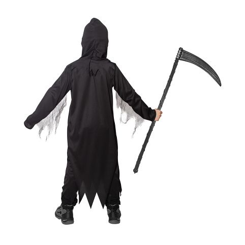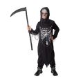 Strašidelný karnevalový kostým s motivem smrtky! Kostým ve velikosti S je určen pro děti ve věkovém rozmezí 4-6 let (105-116 cm). Balení obsahuje černý hábit s bílým potiskem kostry a kapuci. Součástí kostýmu je řetěz.