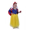Proměň se během chvilky v půvabnou Sněhurku! Kostýmek o velikosti S je určen pro holčičky ve věkovém rozmezí 4-6 let (110-116 cm). Barevný kostým je dekorován v přední části modrými flitry a zlatým zdobením. Součástí je odnímatelný červený plášť s bílým límcem.