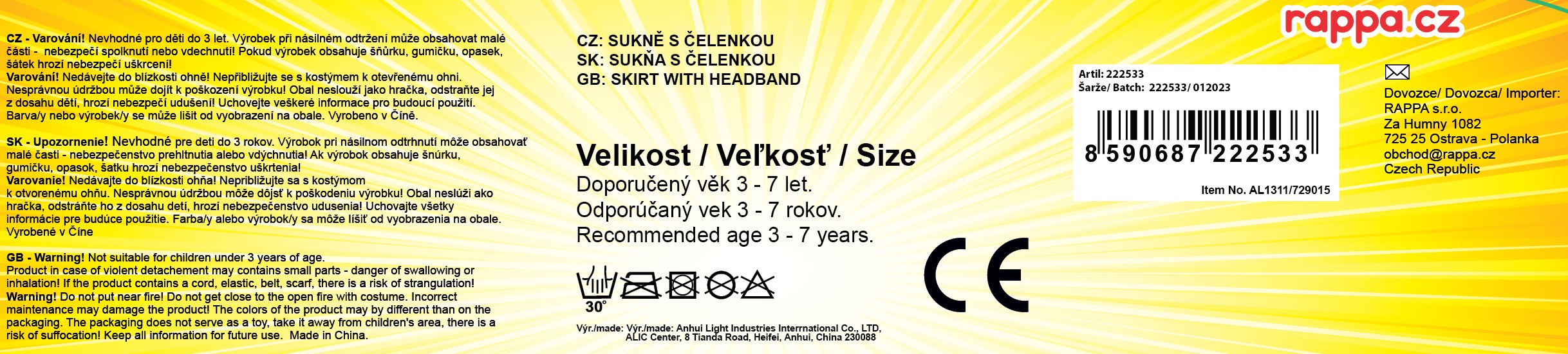 Roztomilá sukýnka TUTU je určena pro holčičky ve věkovém rozmezí 3-7 let (104-146 cm), obvod pasu 46-75 cm. Tento úchvatný kousek v růžové barvě je zdoben duhovým saténovým lemováním. Součástí této sady je senzační čelenka jednorožce se zlatým rohem a barevnými růžemi! Sukýnka má délku cca 33 cm.