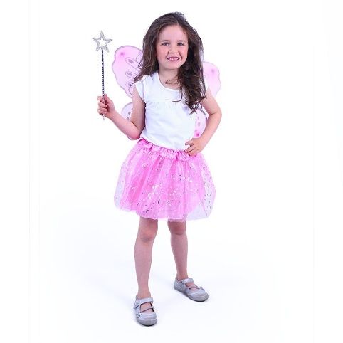 Dětský kostým tutu sukně růžová motýl s hůlkou a křídly