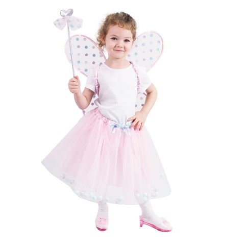 Krásná vílí sada pro malé holčičky! Sada obsahuje růžovou tylovou TUTU sukýnku se saténovou spodničkou. Sukně je zdobena ve spodní části kuličkami, k tomu perfektně sladěná křídla a hůlka ve stejném motivu. V lemování křídel jsou zabudována světýlka, která po zapnutí svítí. Baterie jsou součástí. Sukně je dlouhá cca 36 cm a je vhodná pro obvod pasu 50-60 cm. Určeno pro holčičky ve věkovém rozmezí 3-10 let (104-146 cm). Nejen letos je potřeba myslet EKO-nomicky i EKO-logicky! EKO-balení je vhodné zejména pro e-shopy kde zákazník nakupuje dle fotografie a není třeba velkého balení s věšákem. EKO-logicky – na balení bylo použito méně plastu a dalších materiálů. Jedná se o malý transparentní obal s fotografií. EKO-nomicky –EKO-obal zabere jen polovinu místa – šetřete skladová místa s námi!