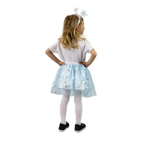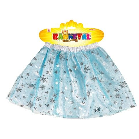 Modrá sukně TUTU v pase na gumičku! Sukýnka je určena pro holčičky ve věkovém rozmezí 3-7 let. Nadýchaná suknička je zdobena třpytivými sněhovými vločkami a saténovým lemováním v pase. Délka sukýnky je cca 30 cm. Součástí je čelenka se sněhovými vločkami.
