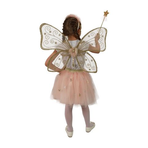 Krásná vílí sada pro malé holčičky! Sada obsahuje křídla se zlatým potiskem, nadýchanou sukýnku s tylem, který je zdobený stříbrnými a zlatými hvězdičkami. Celý set doplňuje vílí kouzelnická hůlka a čelenka do vlasů. Sukně je v pase na gumu a dlouhá cca 34 cm. Nejen letos je potřeba myslet EKO-nomicky i EKO-logicky! EKO-balení je vhodné zejména pro e-shopy kde zákazník nakupuje dle fotografie a není třeba velkého balení s věšákem. EKO-logicky – na balení bylo použito méně plastu a dalších materiálů. Jedná se o malý transparentní obal s fotografií. EKO-nomicky –EKO-obal zabere jen polovinu místa – šetřete skladová místa s námi!