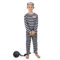 Pruhovaný karnevalový kostým vězeň v typických bílo-černých barvách ve velikosti S je určen pro chlapce ve věku 4-6 let (110-116 cm). Kostým obsahuje kalhoty, triko a čepici s číslem vězně.