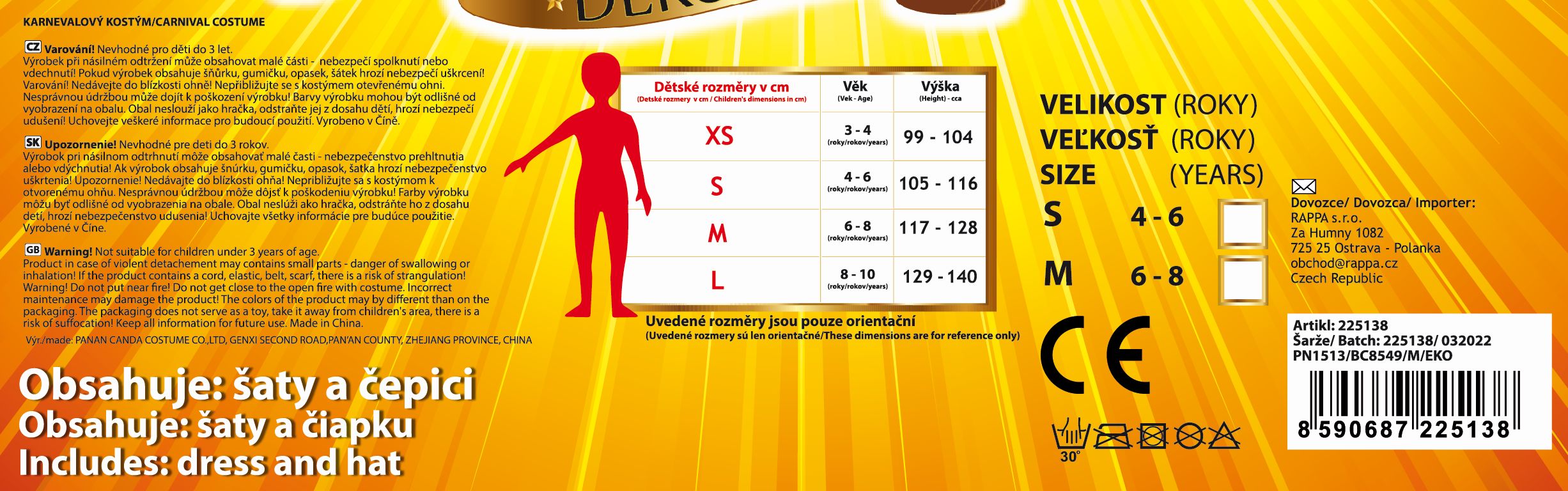 Pruhovaný karnevalový kostým vězeňkyně v typických bílo-černých barvách ve velikosti M je určen pro děvčata ve věku 6-8 let (116-128 cm). Kostým obsahuje dlouhé triko a čepici s číslem vězně. Nejen letos je potřeba myslet EKO-nomicky i EKO-logicky! EKO-balení je vhodné zejména pro e-shopy kde zákazník nakupuje dle fotografie a není třeba velkého balení s věšákem. EKO-logicky – na balení bylo použito méně plastu a dalších materiálů. Jedná se o malý transparentní obal s fotografií. EKO-nomicky –EKO-obal zabere jen polovinu místa – šetřete skladová místa s námi!