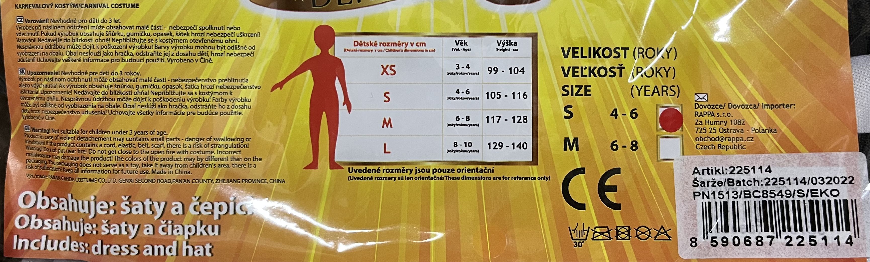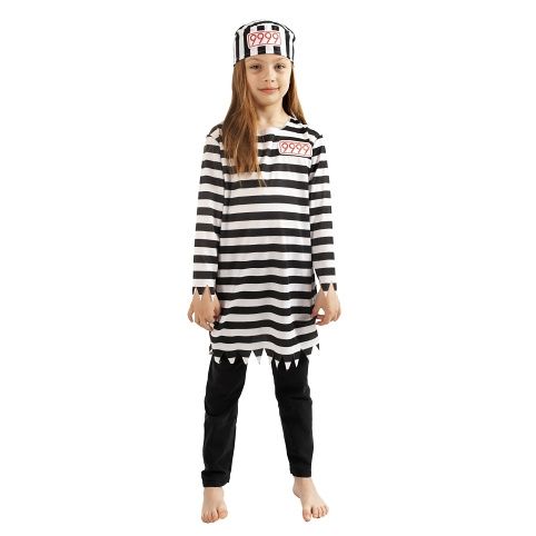 Pruhovaný karnevalový kostým vězeňkyně v typických bílo-černých barvách ve velikosti S je určen pro děvčata ve věku 4-6 let (105-116 cm). Kostým obsahuje dlouhé triko a čepici s číslem vězně. Nejen letos je potřeba myslet EKO-nomicky i EKO-logicky! EKO-balení je vhodné zejména pro e-shopy kde zákazník nakupuje dle fotografie a není třeba velkého balení s věšákem. EKO-logicky – na balení bylo použito méně plastu a dalších materiálů. Jedná se o malý transparentní obal s fotografií. EKO-nomicky –EKO-obal zabere jen polovinu místa – šetřete skladová místa s námi!