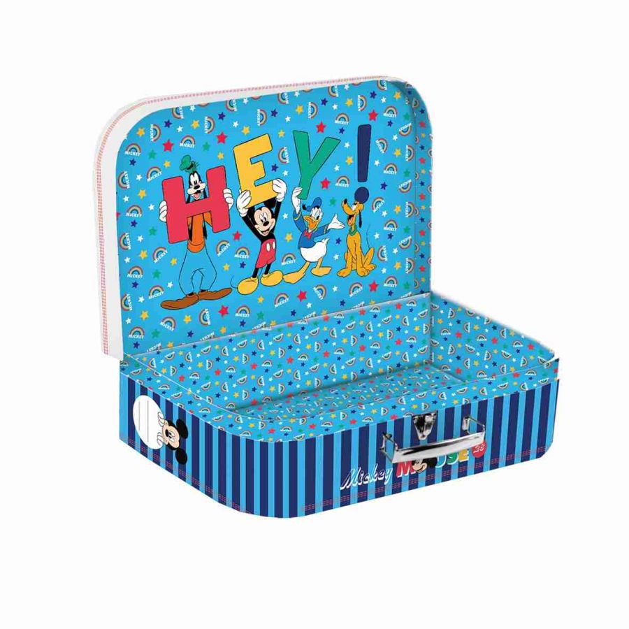Papírový dětský kufřík velikosti 25 cm. Kufřík je vyroben z kvalitního pevného kartonu s vnitřní potiskem a kovovým uzavíráním s rukojetí. Jeho využití v dětském světě je velké, možnost uložení hraček ale i jiných drobností na cestu k babičce.