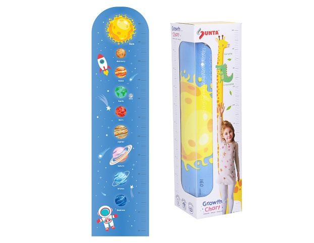 Dětský metr na zeď pěnový vesmír. Délka 120 cm, šířka 30 cm. Vyznačená výška 50 cm - 160 cm.