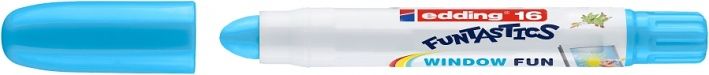 Dětské barvy edding Funtastics 16 pro zdobení skleněných ploch. Popisovač ve formě voskovky s rtěnkovým výsuvem je vhodný i pro menší děti. Barvy nestékají, není potřeba je nechávat zasychat, takže ani malí umělci nezanechají ve svém okolí nepořádek. Výrazné barvy jsou na skle, zrcadle i černém papíru dobře viditelné. Na skle nezanechávají mastnou stopu, ani když necháte delší dobu na umělecká díla působit sluneční světlo. Barva na bázi vody je vypratelná z většiny textilií na 60 °C. Z oken a zrcadel lze jednoduše smýt vodou a běžnými přípravky na mytí oken. Výsuvný hrot. Šíře stopy: 2-6 mm. Sada obsahuje 5 barev: červená, žlutá, hnědá, světle modrá, neonově zelená. Výrobek odpovídá CE požadavkům na dětské hračky. Upozornění: obsahuje malé části - nevhodné pro děti mladší 3 let.