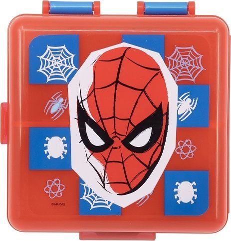 Plastový svačinový box s motivem SPIDERMAN, má jednu velikou přihrádku ve spodní části a ve víčku jsou dvě menší přihradky rozdělené vnitřní prepážkou. Jednoduchý a bezpečný uzávěr.