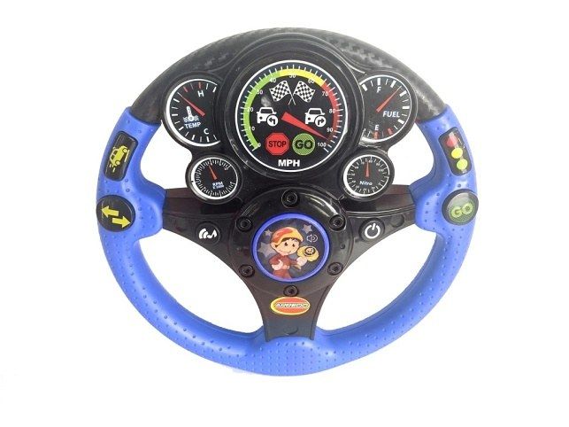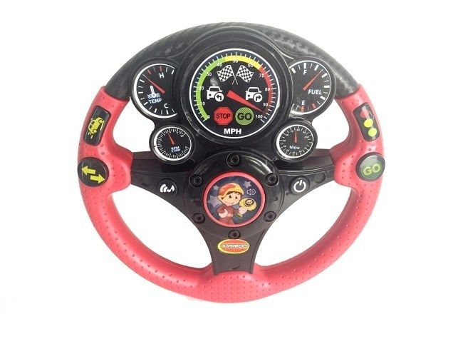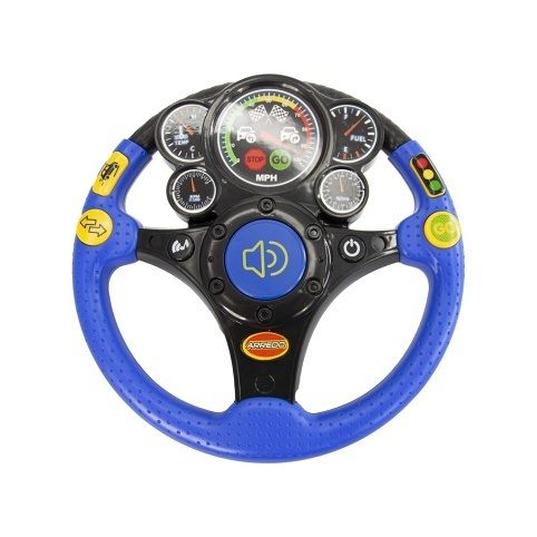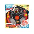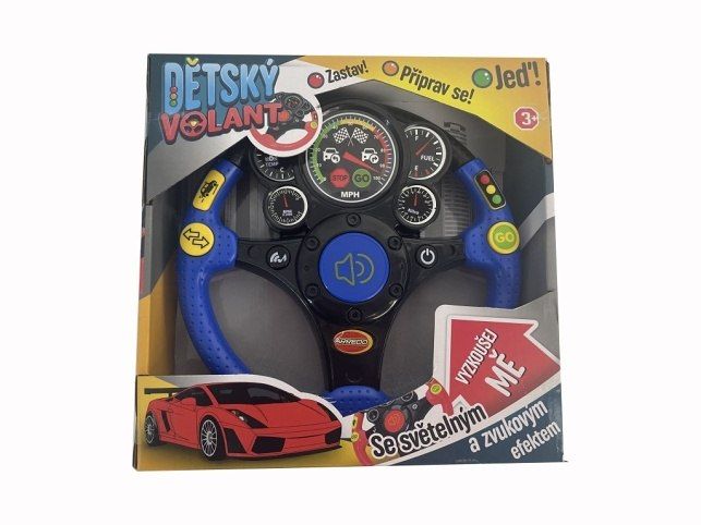 Dětský volant pro děti se zvukovými efekty a písničkami. Volant mluví český napr. slova: Zastav! Připrav se a jeď! Dvě vtipné originální české písničky. Volant o velikosti cca 24 cm se světelnými a zvukovými efekty. Zvuk troubení, startování, blikání, houkačky, směrového světla, hudba, zvuky brzd. Zastav! Připrav se a jeď! Na baterie: 3x AA (nejsou součástí balení)