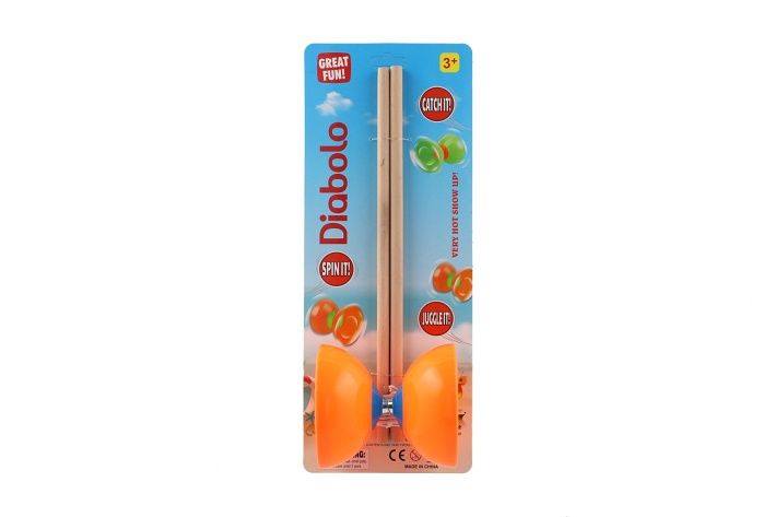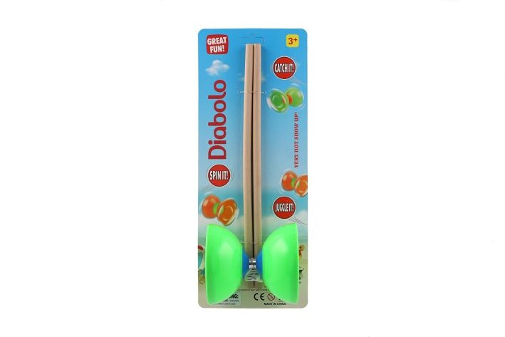 Diabolo velké sada plast/dřevo 35x12cm 2 barvy na kartě