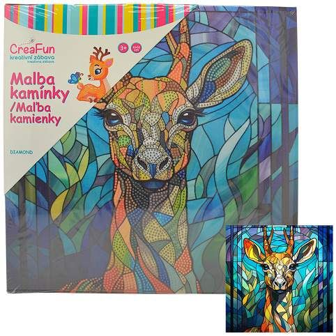 Vytvořte si krásný obrázek z barevných kamínků. Obsah: kamínky různých barev, pero pro přenos kamínků, tácek, vosk do pera, obrázek-plátno s dřevěným rámem. Postup: Obrázek je zakrytý ochrannou folií, kterou sundáváte postupně, tak jak budete aplikovat kamínky. Při sundání celé folie najednou hrozí, že se ztratí viskozita lepidla a kamínky nebudou držet. Plátno obsahuje označení, která jsou umístěna i na sáčcích s kamínky. Podle označení, víte kam který kamínek patří. Nejprve si do hrotu pera naberete vosk, díky kterému se kamínky snadno přichytí na pero. Kamínky perem aplikujte na obrázek. Rozměr obrázku: 30x30cm