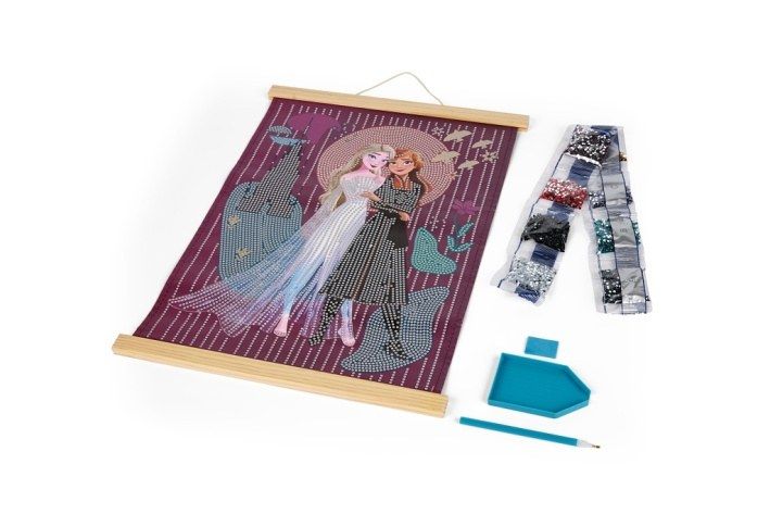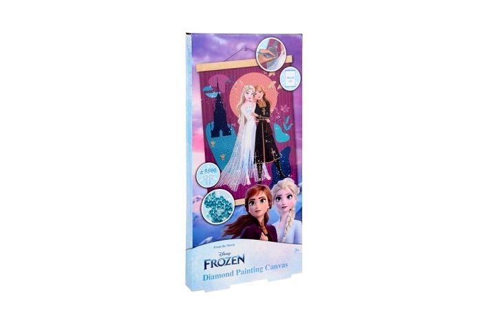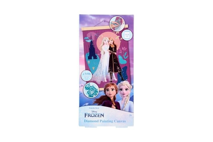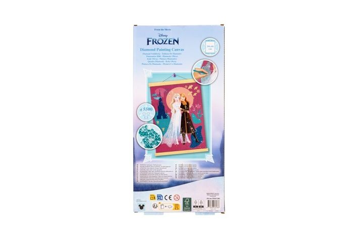 Kreativní sada pro výrobu diamond painting obrazu s motivem oblíbených postaviček z filmu Frozen. Pomocí třpytivých „diamantů“ děti i dospělí vyplní obrázek na plátně a vytvoří tak nádhernou dekoraci do pokoje.XL formát 40 × 30 cm poskytuje dostatek prostoru pro tvoření,hotový obraz je krásná dekorace nebo dárek. Balení obsahuje sňůrku na zavěšení, plátno s předtištěným obrázek a více jak 5,5tis diamantů, aplikátor a pořadač.