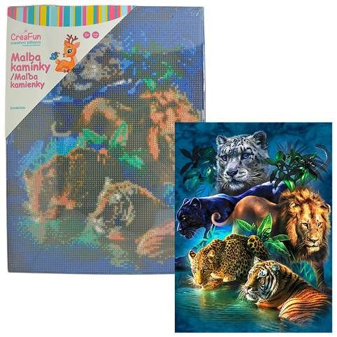 Vytvořte si krásný obrázek z barevných kamínků. Obsah: kamínky různých barev, pero pro přenos kamínků, tácek, vosk do pera, obrázek-plátno s dřevěným rámem. Postup: Obrázek je zakrytý ochrannou folií, kterou sundáváte postupně, tak jak budete aplikovat kamínky. Při sundání celé folie najednou hrozí, že se ztratí viskozita lepidla a kamínky nebudou držet. Plátno obsahuje označení, která jsou umístěna i na sáčcích s kamínky. Podle označení, víte kam který kamínek patří. Nejprve si do hrotu pera naberete vosk, díky kterému se kamínky snadno přichytí na pero. Kamínky perem aplikujte na obrázek.