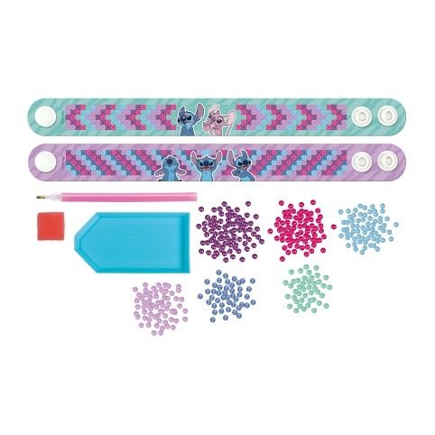 Vytvoř si své vlastní zářivé náramky s motivem Stitch s pomocí diamantového malování! Tato zábavná kreativní sada obsahuje vše potřebné k ozdobení dvou originálních náramků třpytivými kamínky. Skvělá aktivita pro děti i dospělé, která podporuje fantazii a jemnou motoriku. Součástí balení aplikátor, dva ks náramků, pořadač, vosk a barevné kamínky.