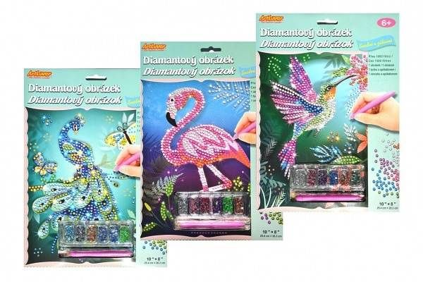 Diamantový obrázek 20,5x25cm s doplňky 3 druhy na kartě 23x32cm