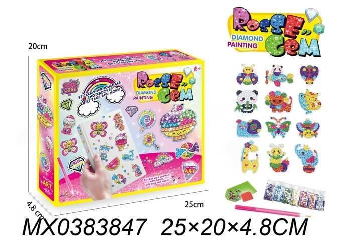 Ozdob si zápisník, deník, jmenovky na dárky a další…Diamantové tvoření: 1. Odloupnutím fólie, odkryješ na vybraném obrázku lepidlo 2. Ponoř pero do vosku 3. Nabírej drahokamy perem 4. Umísti drahokamy na plochu lepidla.
