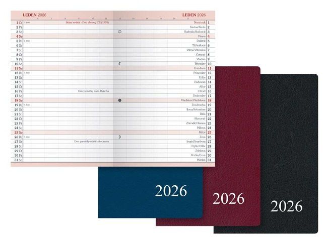Dokonalý přehled! Měsíční diář 2026 je perfektní volba pro každého, kdo potřebuje mít celý měsíc přehledně na očích. Každý měsíc je zobrazen na jedné dvoustraně, což vám umožní rychlý pohled na všechno důležité. Diář nabízí dostatek prostoru pro zapisování, plánování a poznámky k jednotlivým dnům. PVC obálka v praktičtých barvách (modrá, červená, černá) chrání diář. Díky kompaktním rozměrům se snadno schová do tašky nebo najde své místo na stole – vždy po ruce, kdykoli budete potřebovat rychlý přehled. DIÁŘ OBSAHUJE: - roční přehled roku - mezinárodní svátky - abecední seznam jmen - strana pro poznámky - jmenné kalendárium - číslování týdnů - státní svátky a významné dny - pracovní dny a hodiny - fáze měsíce - letní a zimní čas Počet stran: 32 Vazba: sešitová V1 Kalendárium: měsíční Rozměr: 75 x 115 mm Barva: modrá, bordó, černá Povrch a zpracování obálky: PVC Uvedená cena je za 1 ks.
