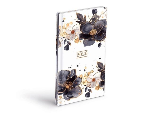 Váš společník po celý rok! Týdenní diář na rok 2026 je kombinací elegance a jemnosti. Jeho bílá plocha je pokryta výraznými květinovými motivy v černé a zlaté barvě. Tento design má romantický nádech, ale zároveň je moderní. Obálka je vyrobena z matného lamina s parciálním lakem, což jí dodává nejen vizuální atraktivitu, ale i příjemný povrch a odolnost proti každodennímu opotřebení. Díky kompaktní velikosti je snadné mít diář vždy při sobě, a odtrhávací rožky vám umožní rychlou orientaci v jednotlivých týdnech. DIÁŘ OBSAHUJE: - roční přehled roku - plánovací kalendář - čvrrtletní plánovací kalendář - abecední seznam jmen - státní svátky - mezinárodní svátky - 7 stran pro poznámky - mapy - jmenné kalendárium - číslování týdnů - státní svátky a významné dny - východy a západy Slunce - fáze měsíce - letní a zimní čas - znamení - přehled dvou měsíců Vazba: šitá V8 Motiv: květinový Rozsah: 128 stran Rozměr: 90 × 170 mm Kalendárium: československé týdenní Povrchy a zpracování obálky: matné lamino s parciálním lakem Uvedená cena je za 1 ks.