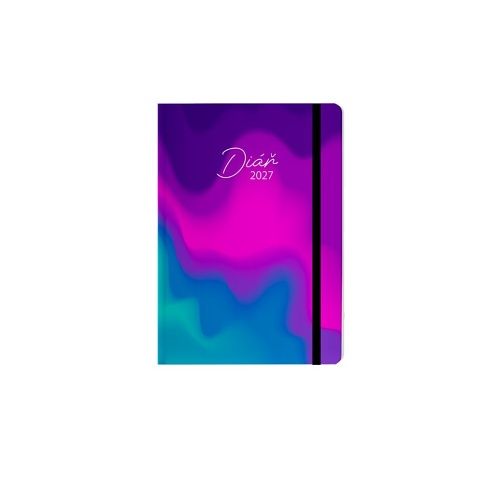 Týdenní diář ve formátu A6 s 128 stranami. Moderní design podtrhuje povrchová úprava Soft touch lamino s UV lakem. Diář obsahuje prostor na osobní údaje, plánovací kalendář na rok 2027, přehledný kalendář na roky 2027/2028, seznam křestních jmen, důležitá telefonní čísla a přehledný měsíční kalendář na období 2027/2028. Nechybí ani prostor na poznámky. Kalendárium zahrnuje jména a státní svátky v češtině a slovenštině, dny a měsíce v pěti jazycích (čeština, slovenština, němčina, angličtina, ruština), počet dnů od začátku do konce roku a měsíční fáze. Praktický design doplňují kulaté rohy a perforace pro snadné odtrhávání stránek.