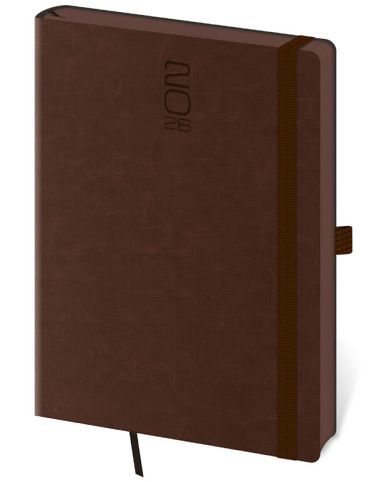 Diář denní A5 Memory s gumičkou - tmavě hnědá 2026 / 20,5cm x 14,5cm / DM422-1-26