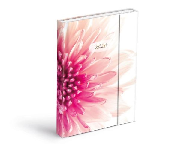 Plánujte stylově! Denní diář pro rok 2026 ve formátu A5 s nádherným květinovým motivem, který zaujme na první pohled. Velký růžový květ na světlém pozadí působí svěže a optimisticky – ideální pro každodenní zapisování poznámek, úkolů i plánů. Pevná obálka s lesklým laminem zajišťuje odolnost a dlouhou životnost, zatímco zavírání na magnet drží vše bezpečně pohromadě – bez zbytečných starostí. Odtrhávací spodní rožky pak umožňují rychlé nalistování aktuálního dne, takže se v diáři vždy snadno zorientujete. DIÁŘ OBSAHUJE: - prostor pro osobní údaje - roční přehled roku - plánovací kalendář - čtvrtletní plánovací kalendář - abecední seznam jmen - státní svátky - mezinárodní svátky - mapy - jmenné kalendárium - číslování týdnů - státní svátky a významné dny - východy a západy Slunce - fáze měsíce - letní a zimní čas - znamení - přehled měsíce - prostor pro poznámky a denní cíle Vazba: šitá V8 Motiv: květinový Rozsah: 336 stran Rozměr: 140 x 205 mm Kalendárium: československé denní Povrchy a zpracování obálky: lesklé lamino Uvedená cena je za 1 ks.