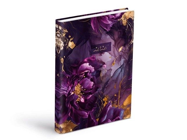 Temná elegance pro každý den! Denní diář 2026 ve formátu A5 spojuje praktičnost s uměleckým dojmem. Výrazný květinový motiv v odstínech fialové a zlaté dodává celému provedení luxusní, téměř mystický nádech. Povrch diáře je z měkkého, na dotek sametově hebkého materiálu (PU), který je odolný a příjemný při každodenním používání. Odtrhávací rožky zpříjemňují orientaci v diáři a umožňují rychlé nalistování aktuálního dne. Uvnitř najdete denní rozvržení s dostatkem prostoru na vše, co si potřebujete zapsat – od úkolů po myšlenky. DIÁŘ OBSAHUJE: - prostor pro osobní údaje - roční přehled roku - plánovací kalendář - čtvrtletní plánovací kalendář - abecední seznam jmen - státní svátky - mezinárodní svátky - mapy - jmenné kalendárium - číslování týdnů - státní svátky a významné dny - východy a západy Slunce - fáze měsíce - letní a zimní čas - znamení - přehled měsíce - prostor pro poznámky a denní cíle Vazba: šitá V8 Motiv: květinový Rozsah: 336 stran Rozměr: 140 x 205 mm Kalendárium: československé denní Povrchy a zpracování obálky: PU soft Uvedená cena je za 1 ks.