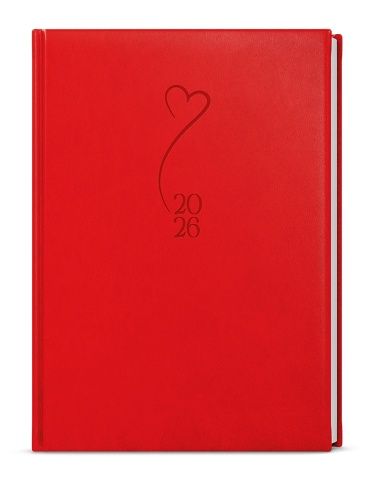 Denní diář A5 vyrobený z měkkého hladkého materiálu v červené barvě s motivem Srdce. Díky formátu a velkému prostoru si můžete efektivně plánovat každý den.