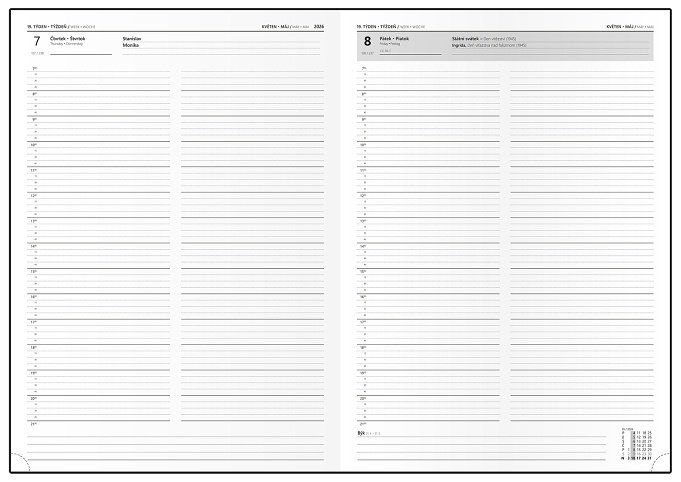 Denní diář ve formátu A4 v oblíbeném hladkém materiálu vivella. Díky velkému formátu Vám diář poskytne velký prostor pro každodenní plánování.
