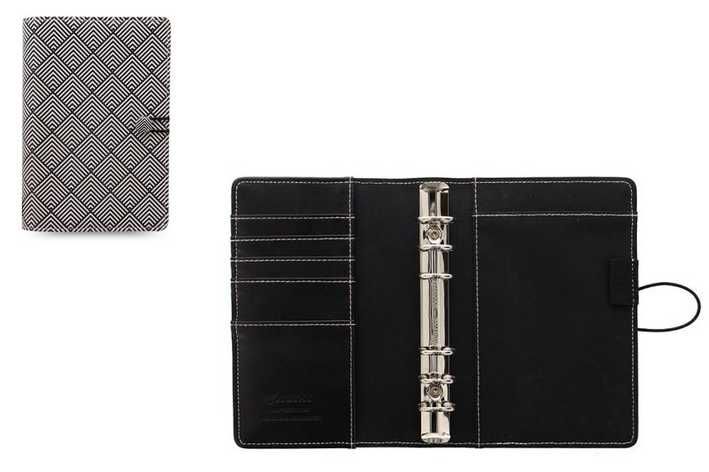 Pravá vnitřní strana desek: Vertikální kapsa, elastické poutko na pero.