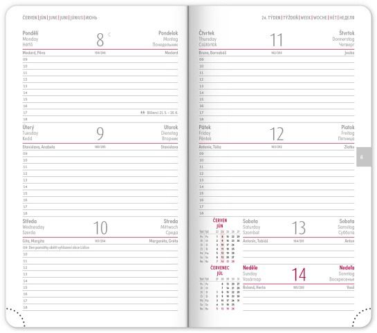 Kapesní diář Ajax 2026 ve zlaté barvě. Jemně strukturovaný povrch s atypickým reliéfem je vhodný pro všechny typy ražeb. Diář má zakulacené rohy, poutko na tužku a elastickou gumičku. Týdenní rozvrh s česko-slovenským kalendáriem a doplňkovou angličtinou, němčinou, maďarštinou a ruštinou.