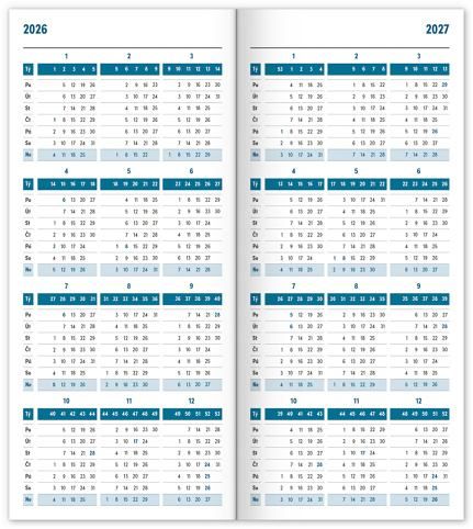 Praktický tenký diář ve vínové barvě s měsíčním rozložením se vejde opravdu všude. Obsahuje české kalendárium se jmény, svátky a památnými dny, pracovní kalendář, seznam jmen a přehled na rok 2026 a 2027.
