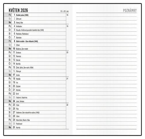 Měsíční diář v jednoduché měkké vazbě V1 v oblíbeném formátu a moderním kraftovém obalu.