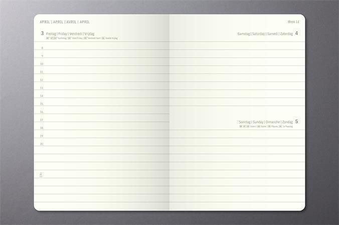 Diář: 1 strana = 1 den (So / Ne = 1 strana)